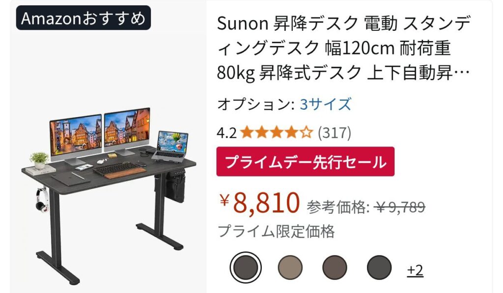 電動昇降デスクといえばかなり憧れている人も多いのではないでしょうか?今回のアマゾンセールでは珍しく8000円台で電動昇降デスクが登場しました!正直めったに見ない破格値なので気になっている人は買うべきだと思います。