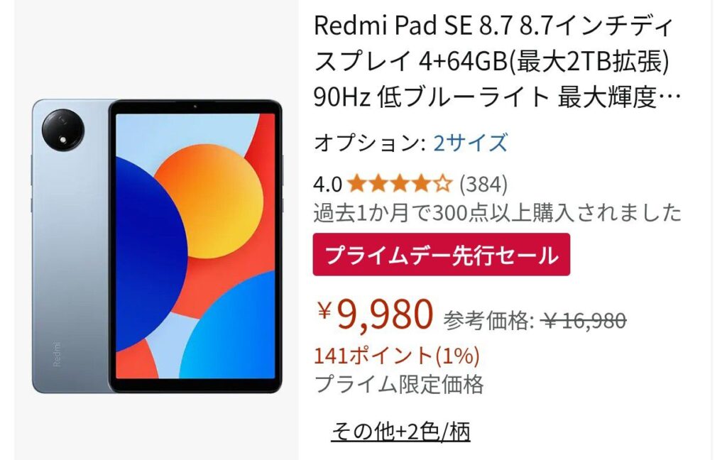 安心と信頼のXiaomiから出ているRedmi Pad SE 8.7になります!メモリが4GB,容量が64GBで画面のリフレッシュレートが90Hzまで出ます。性能が高いとは言い難いですが、ごろ寝やちょっとした持ち運び用途には最適な値段となっています!