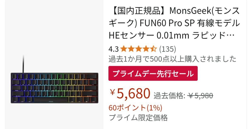 ラピッドトリガー搭載で元から破格値だったFUN60 Pro SPがまさかのさらにお値下げ!今レビュー動画を作ってますがかなりおすすめできます!個人的にはこの製品の白色が好きです!
