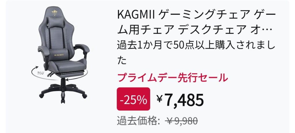 10,000円を切るどころか7500円しかしないゲーミングチェアです。めったに見かけない破格値の割にフットクッションなどもあり、かなり使い心地が良さそうな一品になっています。