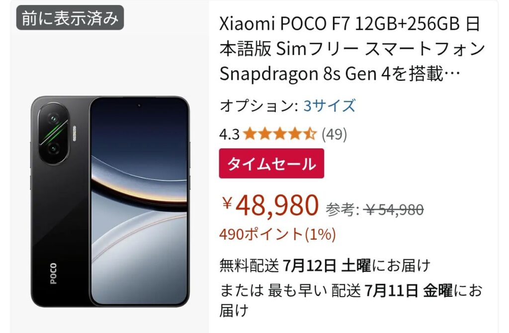 Snapdragon 8s Gen4というCPUを搭載し、メモリ12GB,容量256GBとかなり高性能でありながら新品48,980円!それだけでも安いのにポイント還元で約4000ポイントつくので、実質44980円程度で買えてしまいます!